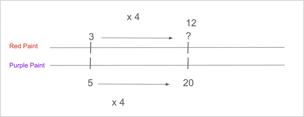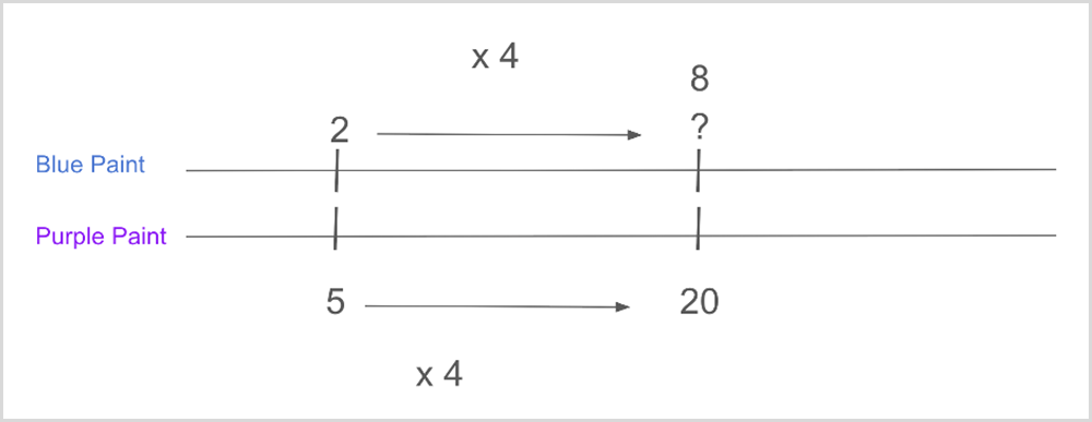 For every 8 cups of blue paint, 12 cups of red paint is mixed to create 20 cups of purple paint. |