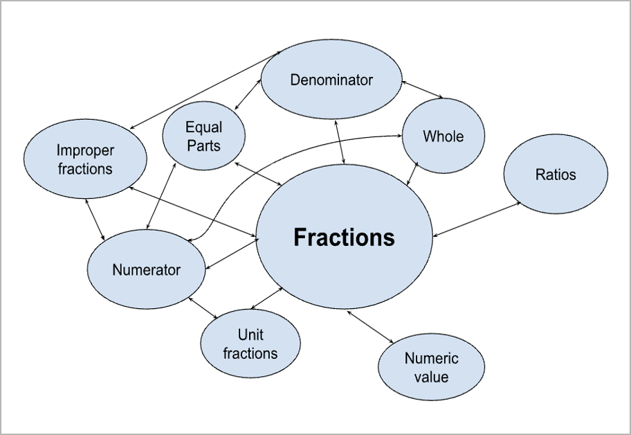 Use concept maps to show how concepts interrelate. A concept map is a diagram that illustrates the relationships among a set of related concepts centered on a central idea. Teachers can use this graphical tool to organize information and to represent structural relationships for students. Students can create their own concept maps that demonstrate their understanding of the relationships between critical mathematical concepts in a lesson or a unit. Through each student’s map, teachers can understand their mathematical thinking and identify and address any misconceptions they may have.